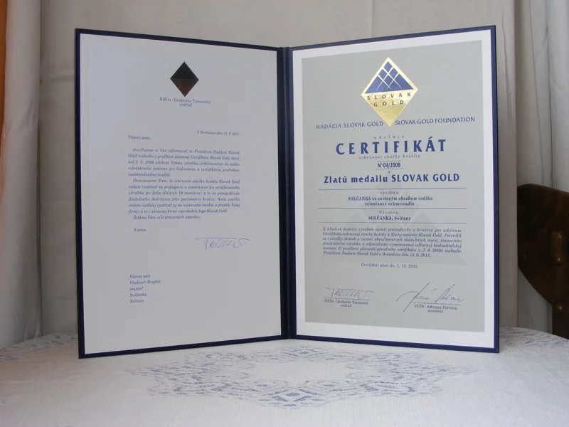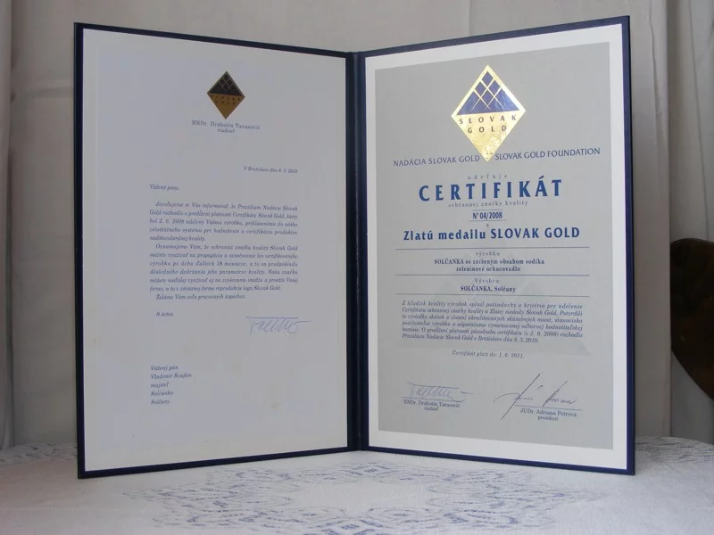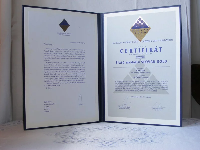 14. apríla 2004Predĺženie certifikátu Slovak Gold N 352022 Solčanka s morskou soľou a Solčanka s kuchynskou soľou