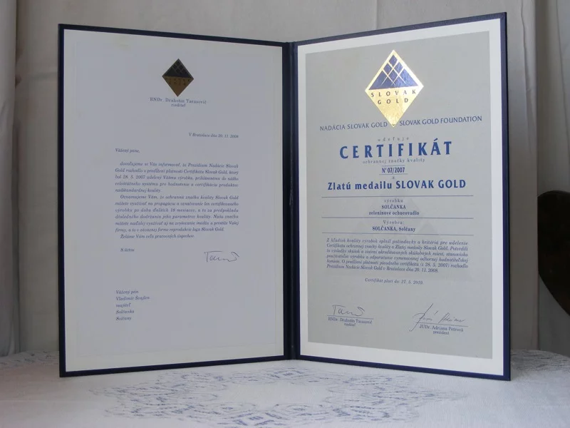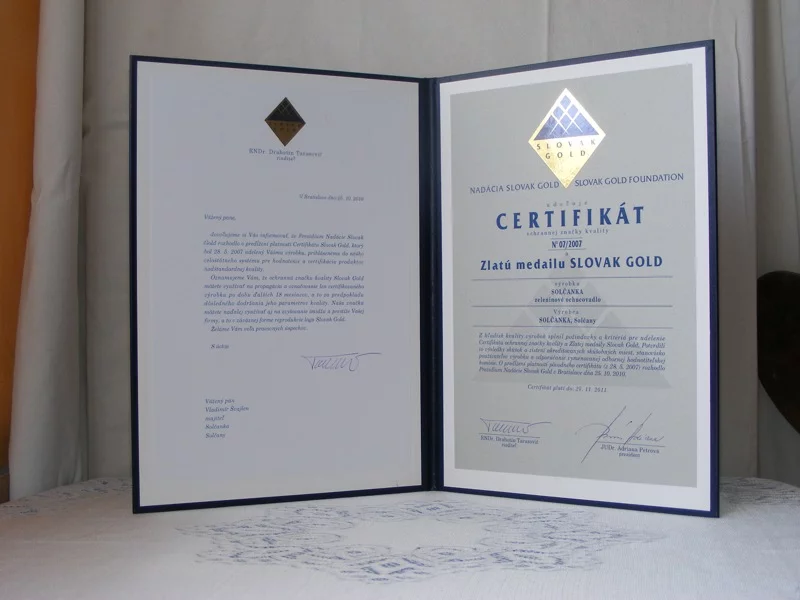 25. októbra 2010Predĺženie certifikátu Slovak Gold N 072007 Solčanka s morskou soľou a Solčanka s kuchynskou soľou