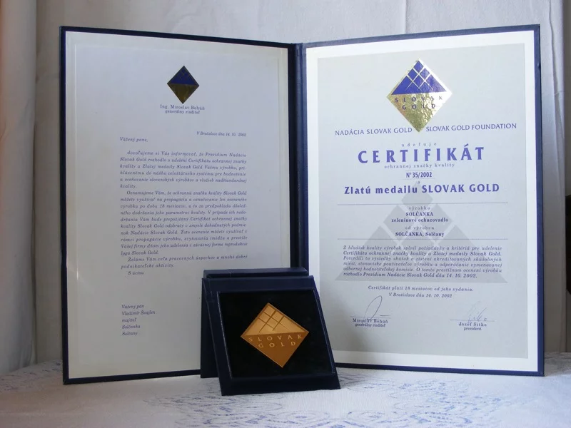 14. októbra 2002Udelenie certifikátu Slovak Gold N 352002 Solčanka s morskou soľou a Solčanka s kuchynskou soľou