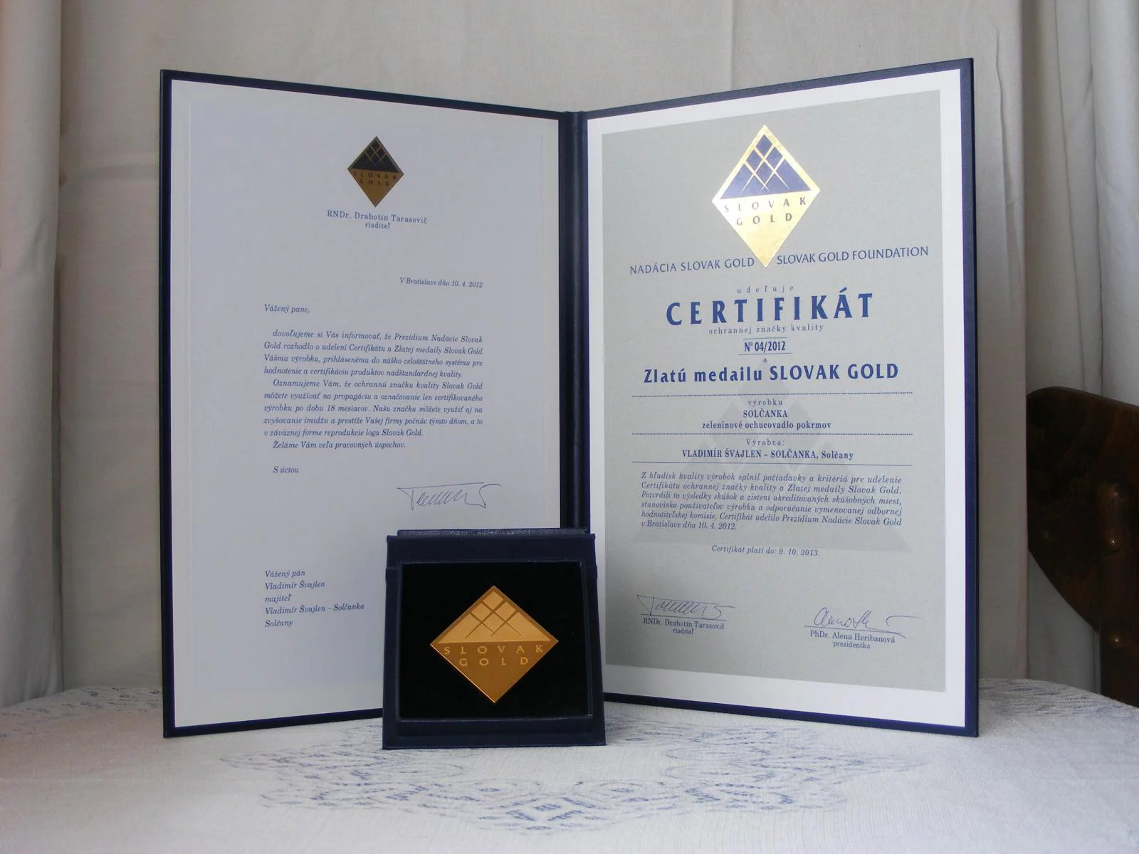 10. apríla 2012Udelenie certifikátu Slovak Gold N 042012 Solčanka s morskou soľou a Solčanka s kuchynskou soľou
